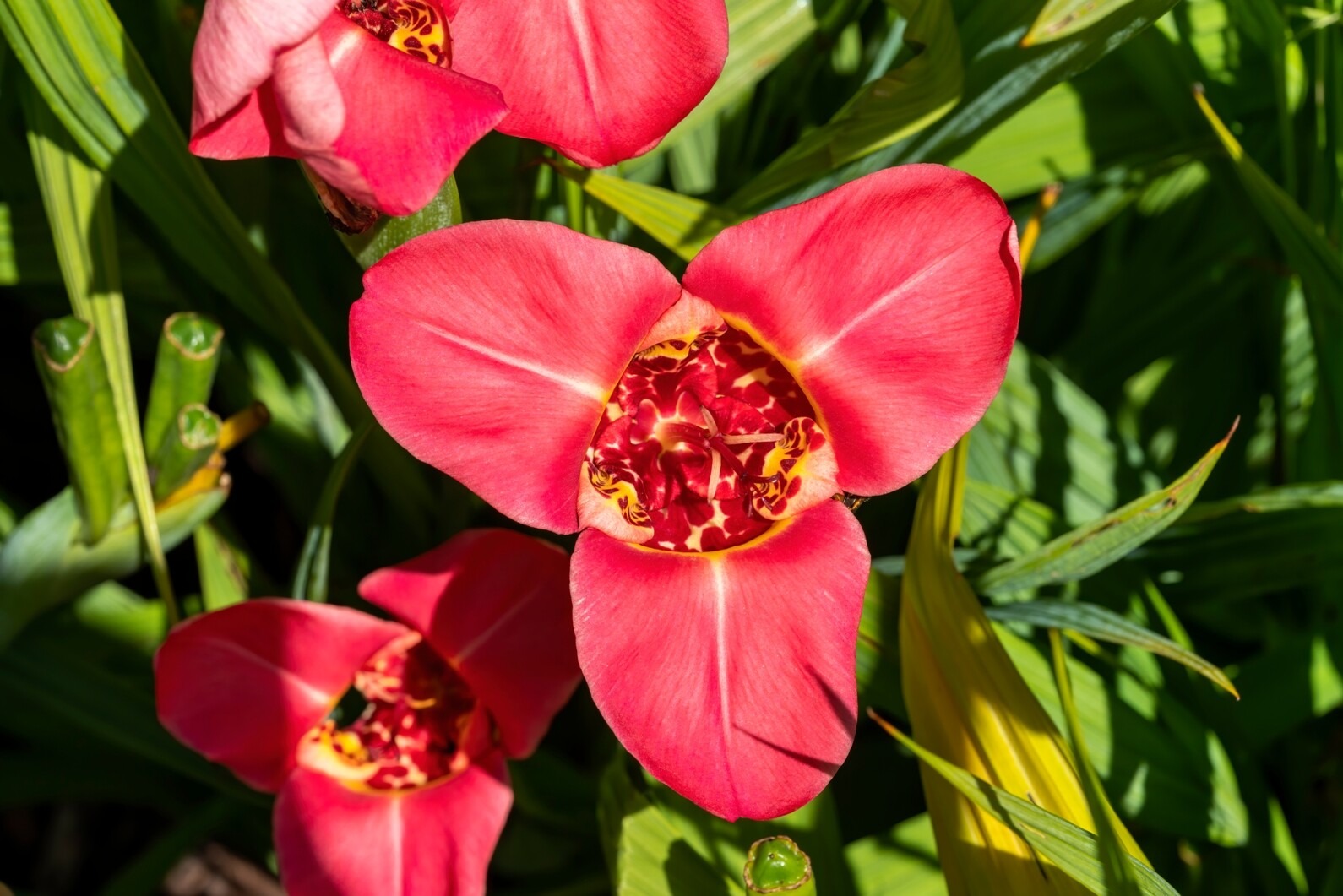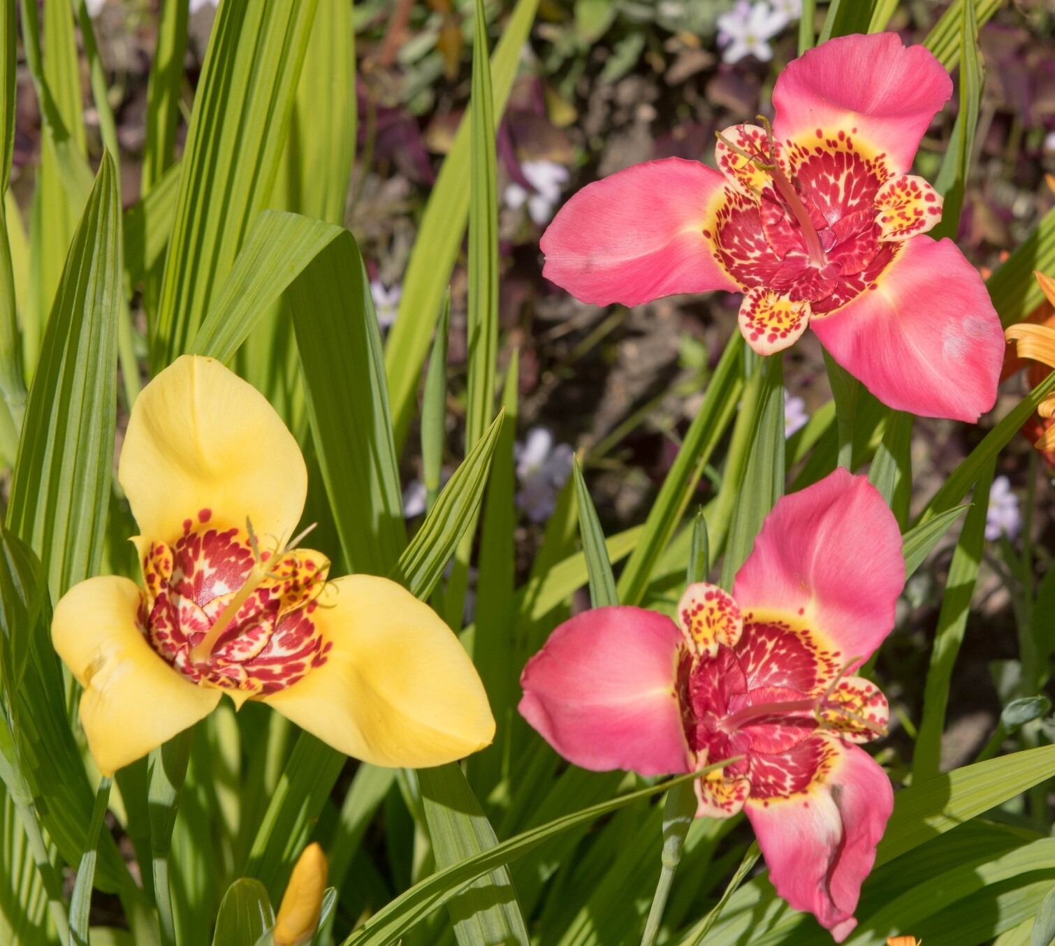 Tigridia looks great with other sun-loving summer bulbs and perennials. Try pairing with: gladioli, crocosmia, dahlias, sparaxis, triteleia, freesia (in pots), and low edging plants like dwarf grasses or silver foliage (e.g. artemisia) to make the patterned flowers stand out.